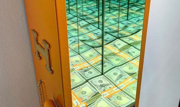 Broke but still like designer things? We get it. This extinguisher case is crafted with custom Hermes Orange powder coated steel, diamond dust, gold plated hardware, and an infinite supply of cash money with Hermes emblem money bands.